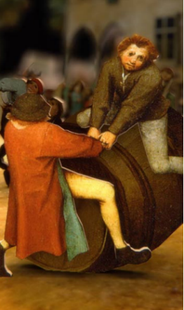 Peinte en 1560 par Pieter Brueghel l’Ancien, l’œuvre Les Jeux d’enfants représente 200 enfants jouant 91 jeux différents. Ici, les enfants peints se réapproprient l’œuvre et disent leur lassitude de sujets contraints à jouer pour l’éternité. Drôle, irrévérencieux, savant.