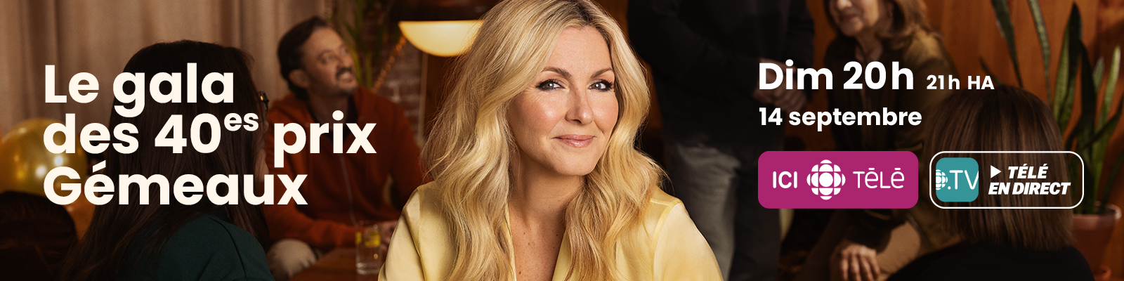 Les célébrations se poursuivront ce dimanche 14 septembre 2025 à l’occasion du Gala d’ouverture des 40es prix Gémeaux, animé par Nicolas Ouellet. Elles se concluront en soirée par le Gala des 40es prix Gémeaux, animé par Véronique Cloutier, diffusé en direct à 20 h sur ICI TÉLÉ, ICI TOU.TV et sur Radio-canada.ca.