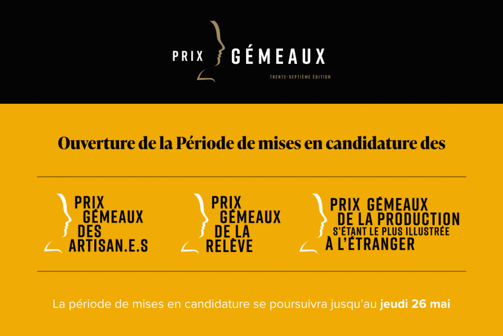 Cliquez ici pour accéder au formulaire de mise en candidature pour le prix Gémeaux des artisan.e.s :
