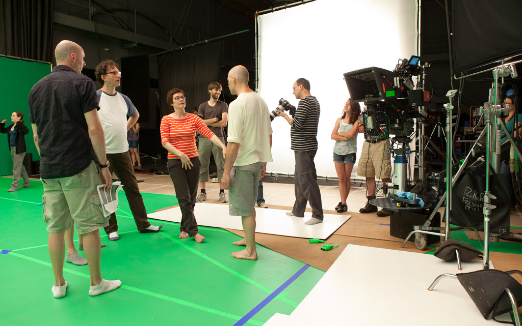 Haut et bas : tournage sur le plateau de Corps fugaces: empreinte (2011) | Centre gauche : affiche de Bhairava (2018) | Centre droit : affiche de Mercy / Miséricorde (2025)